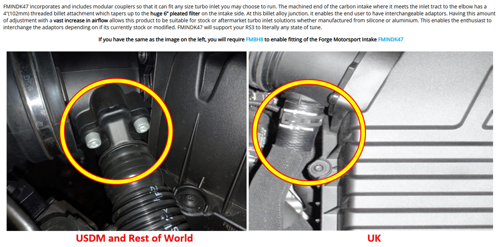 El kit de admisión de carbono Forge Motorsport para los Audi RS3 8V.5 y RS3 8Y está diseñado para optimizar el flujo de aire hacia el motor 2.5 TFSI, manteniendo bajas las temperaturas de admisión. Gracias a un mayor volumen (de 4" a 6") y un flujo de aire más eficiente, este sistema ofrece una ganancia comprobada de +25 CV en un motor estándar a partir de 3000 rpm .
