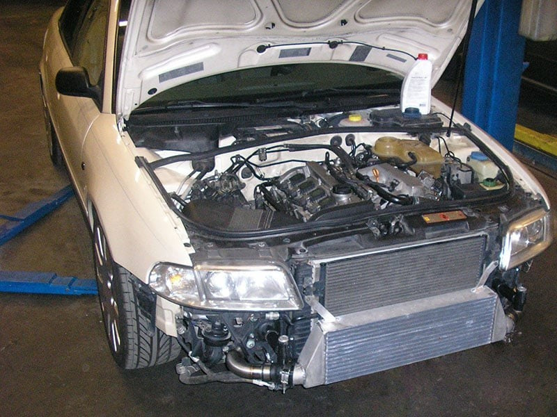 El kit CTS Turbo FMIC para el Audi A4 B5 1.8T es una excelente actualización tanto para coches de serie como modificados. Este kit ofrece una mejora significativa en la refrigeración en comparación con la competencia y ventajas sustanciales sobre la configuración de fábrica. Estas mejoras se deben al núcleo del intercooler de alta densidad y a los depósitos finales de aluminio fundido. Todos los tubos de este kit están laminados con talón, por lo que no tendrá que preocuparse por tubos de sobrealimentación sueltos o con fugas.
